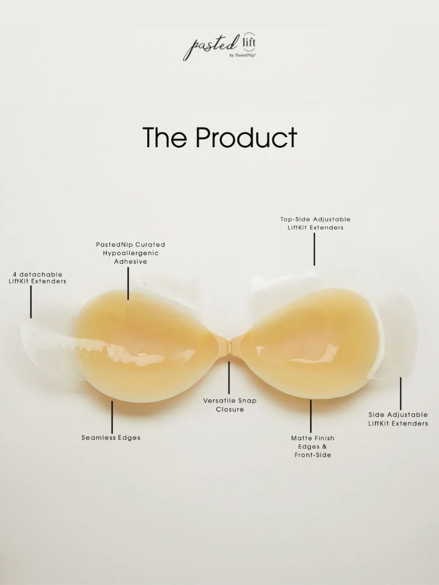 PastedLift is a reusable adhesive bra designed to provide subtle lift and support, while also enhancing cleavage. Perfect for those seeking a little boost without compromising on comfort, it's the go-to choice for a flawless, natural look.